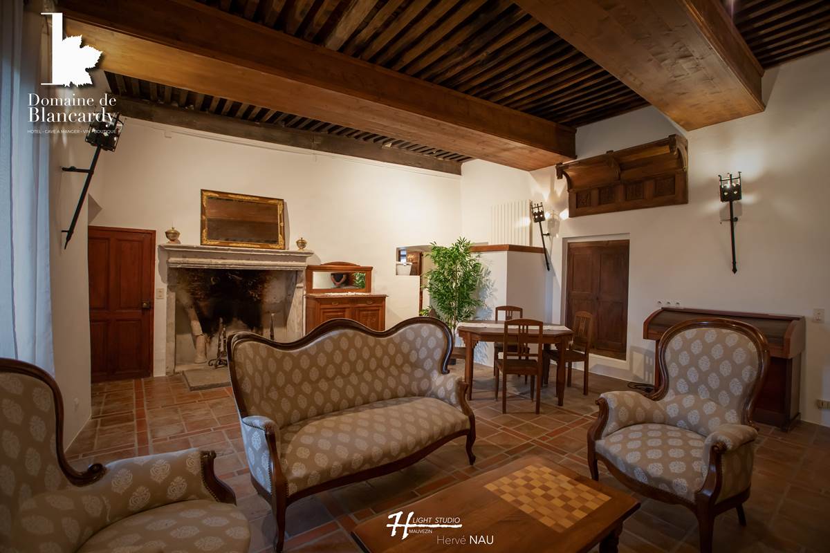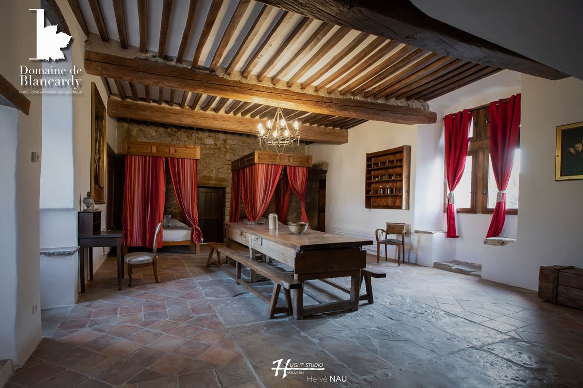 - Un séjour comprenant une grande table et 2 lits doubles à baldaquin,